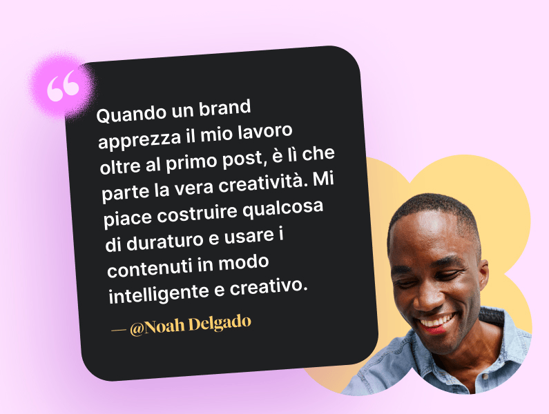 Mi piace quando i brand sono chiari su che tipo di contenuti vogliono, soprattutto se danno degli esempi. Così tutto diventa molto più semplice. Ovviamente la libertà creativa è importante, ma quando il brand specifica cosa ha funzionato bene prima, mi aiuta a creare contenuti che sono davvero in linea con il loro stile e che possono usare concretamente nel marketing.