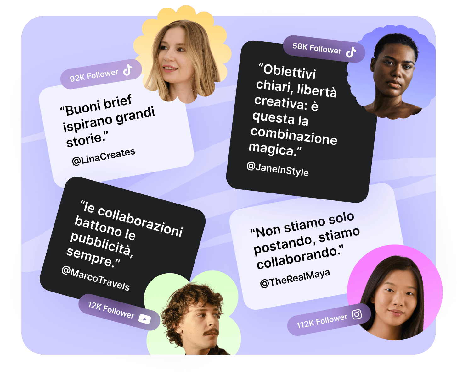 Pensala come una tua cerchia ristretta di creator, affidabili, allineati al brand e pronti a crescere con te.